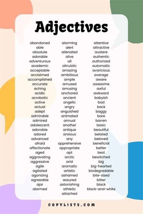 Hey guys! Ever feel like your writing is a little… bland? Like it’s missing that oomph ? Well, guess what? The secret sauce might just be adjectives ! Seriously, these little words are powerhouses that can transform a simple sentence into something vibrant and engaging. So, let’s dive deep into the world of adjectives and see how they can seriously level up your writing game. We’re talking about words that paint pictures, evoke emotions, and make your descriptions pop. Think of them as the sprinkles on your descriptive cupcake – they add flavor, color, and make everything way more interesting. Without adjectives, our sentences would be like a black and white movie when you could have a full-color blockbuster! They’re not just about making things sound pretty; they’re crucial for clarity and for conveying specific meaning. For example, saying “The dog barked” is fine, but saying “The fluffy, brown dog barked loudly ” gives you a much clearer image, right? You can almost see the dog and hear the bark. That’s the magic of adjectives, my friends. We’ll break down what they are, explore different types, and arm you with tons of examples so you can start sprinkling them into your own writing like a pro. Get ready to make your words sing!