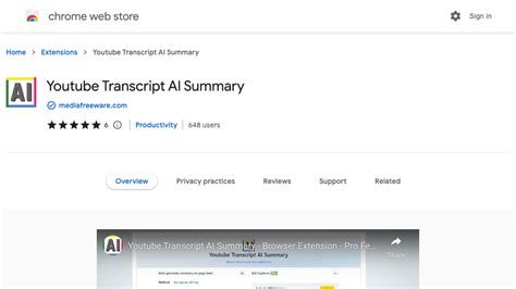 Built-in YouTube Transcript Feature