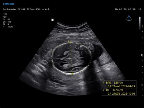 The Head Circumference measurement is crucial for several reasons. Firstly, it offers additional data to estimate gestational age. When used in conjunction with other measurements such as IBPd, the HC helps create a more accurate assessment of how far along the pregnancy is. Secondly, the HC is a key component in assessing fetal growth. Monitoring HC over multiple ultrasounds can identify any growth restrictions or accelerated growth patterns, ensuring the baby is developing at a healthy pace. Thirdly, deviations in HC measurements can offer important clues about the baby’s overall health. For example, an unusually small HC might indicate microcephaly, while an unusually large HC could indicate the baby is larger than average. The HC measurement also plays a role in the delivery process. For instance, it can help the doctors predict if the baby’s head will fit through the birth canal during vaginal delivery. If a significant discrepancy is detected, the doctors may recommend further examinations or consider alternative delivery options.