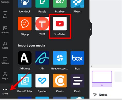 Now, go back to your Canva design. On the left-hand side of the screen, you’ll see a panel with various options like “Templates,” “Elements,” “Uploads,” and so on. Scroll down until you find the “More” option and click on it. In the expanded menu, look for the “Embeds” option. If you don’t see it right away, you might need to scroll down further or use the search bar to find it.