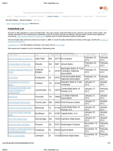 Now, the burning question: where can you actually find FDIC failed bank information ? It’s actually more accessible than you might think! The FDIC maintains a comprehensive and publicly available list of all the banks that have failed since its inception. The primary and most reliable source is, of course, the official FDIC website. They have a dedicated section for bank failures. You can usually find this by searching for “FDIC failed banks list” or navigating through their consumer or industry sections. On their website, you’ll typically find a sortable table or a searchable database. This database allows you to look up banks by name, by date of failure, by state, or even by the name of the assuming institution. For each failed bank, the FDIC provides key details. This includes the bank’s name, the date it was closed, its headquarters’ location, and, importantly, the name of the bank that acquired its deposits and loans (if applicable). They also provide links to official notices and press releases related to the failure, which can offer more in-depth information about the resolution process and what it means for depositors. For recent failures, the FDIC often publishes specific information for customers of that particular bank, outlining the steps for accessing insured deposits and information regarding uninsured funds. These customer-specific pages are gold! They usually contain FAQs and contact information for any further questions. Beyond the official FDIC website, you might find news articles and financial publications reporting on bank failures. While these can provide context and analysis, the FDIC’s official records are always the most accurate and authoritative source for factual information. Remember, the FDIC’s goal is to provide clarity during what can be a confusing time for customers. So, they strive to make this information readily available and easy to understand. It’s a testament to their commitment to transparency and consumer protection. So, if you ever need to check up on a bank’s history or understand the resolution of a past failure, head straight to the FDIC’s digital doorstep. They’ve got the complete rundown. It’s essential for consumers to know where to look, especially in our dynamic financial world. Having this resource at your fingertips empowers you with knowledge and reassurance. Don’t hesitate to bookmark the FDIC’s bank failures page – it’s a valuable tool for anyone who banks in the US. The information is typically updated promptly after a bank failure occurs, ensuring you have the latest details. They also maintain historical data, which is useful for researchers and anyone interested in the long-term stability of the banking sector. The FDIC understands that clear communication is paramount in maintaining public trust, and their online resources are a cornerstone of that effort. It’s all about making sure you, the consumer, feel informed and secure in your banking relationships.