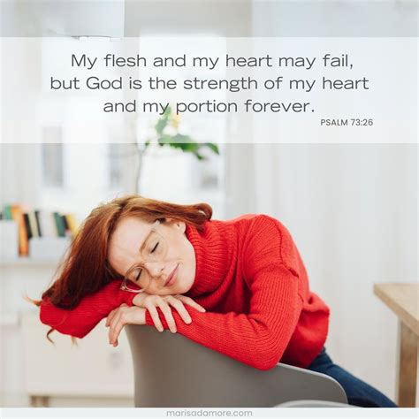 Okay, let’s be real. This verse isn’t just some dusty old saying from a long time ago. It’s super relevant to our lives today, perhaps more than ever. We live in a world that is constantly demanding our attention, our energy, and our time. We’re bombarded with information, pressured to perform, and constantly comparing ourselves to others. It’s no wonder we often feel overwhelmed, stressed, and exhausted. Psalm 73:26 reminds us that even in the midst of this chaos, we have access to a source of strength that is greater than anything the world can throw at us. This verse offers hope for those dealing with stress. In a world that is moving faster than ever before, stress has become almost a daily burden for some. Stress can cause physical and mental issues, but Psalm 73:26 reminds us that our primary source of strength is not tied to our ability to achieve or perform, but is God. It’s a reminder that it’s okay to not be okay. When you know that God is your strength, you don’t have to carry your burdens alone. Whether it is stress, depression, or general fatigue, God is always the answer. The truth of the matter is that God’s strength is always available to us, no matter our circumstances. And that, my friends, is good news. It is a source of hope, a source of peace, and a reminder that even when we feel weak, we are strong in Him. Embrace it, guys! Let it transform your lives!