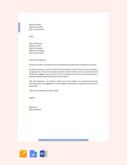 • Introduction: Clearly state the purpose of your letter and the issue you’re complaining about.
