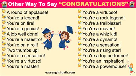 Alright, let’s get into the good stuff! Here are some common English phrases that you can use to express congratulations. These are great go-to options for a variety of situations. First up, we have “Congratulations!” – a classic, simple, and effective way to celebrate any achievement. It’s versatile and can be used in almost any context, from graduations to promotions to winning a game. Next, we have “Well done!” – perfect for acknowledging someone’s hard work and effort. This phrase is generally considered a bit more casual, so it works well with friends or colleagues. “Good job!” is another fantastic option, often used to appreciate someone’s performance, especially in a work or academic setting. You could also say “Great work!” or “Fantastic job!” to show extra enthusiasm. For significant achievements, you might want to consider phrases like “Congratulations on your success!” or “I’m so proud of you!” if you have a close relationship with the person. In a more formal context, phrases like “I would like to extend my congratulations on…” or “Please accept my warmest congratulations on…” are excellent choices. Using these phrases demonstrates respect and professionalism. Remember, guys, the choice of phrase often depends on the specific context and your relationship with the person you are congratulating. Mixing and matching these phrases can help you tailor your message to be as genuine and impactful as possible. So, get creative, and let those well wishes flow!
