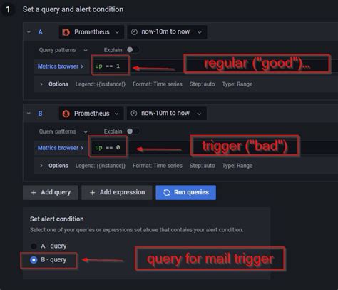 • Define evaluation intervals: Specify how often Grafana should check the alert rule.