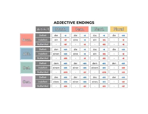 Hey guys! Let’s dive into the nitty-gritty of German adjective endings . You know, those little suffixes that attach to adjectives and change depending on the situation? It can seem super daunting at first, like a linguistic puzzle designed to confuse you. But honestly, once you get the hang of it, it’s not nearly as scary as it seems. In fact, understanding these endings is key to speaking German more fluently and accurately. Think of them as the little helpers that tell you about the gender, number, and case of the noun the adjective is describing. Without them, your sentences would be like a car without a steering wheel – going nowhere fast and probably a bit wobbly. So, grab a coffee, settle in, and let’s break down this essential part of German grammar. We’re going to tackle this step-by-step, making sure you understand why these endings change and how to use them correctly. By the end of this, you’ll feel way more confident when you’re stringing those adjective-noun combos together. We’ll cover the different types of declensions, the rules for nominative, accusative, dative, and genitive cases, and how articles play a crucial role in this whole shebang. Ready to become an adjective ending ninja? Let’s do this!