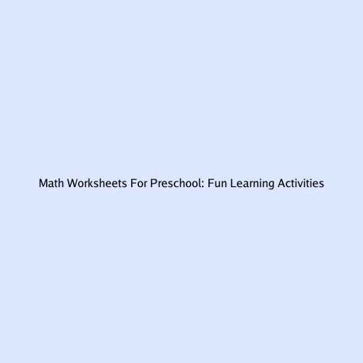 Math Worksheets For Preschool: Fun Learning Activities