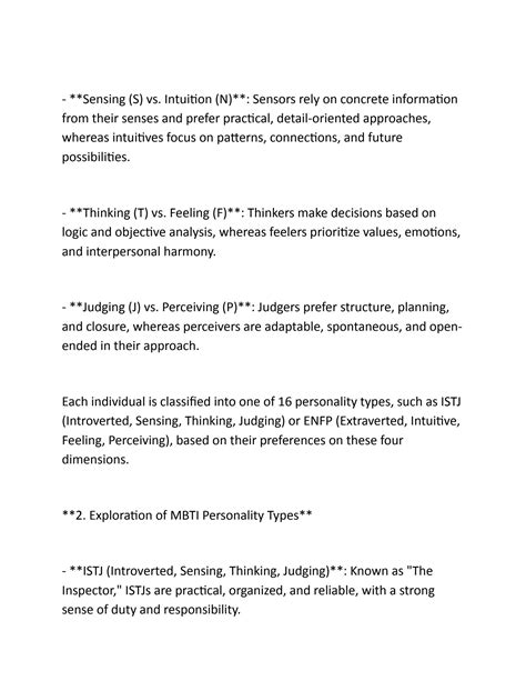 Alright, let’s dive a bit deeper into what makes the Sensing (S) trait so distinct, especially when you pit it against its counterpart, Intuition (N) . This is where the real magic happens in understanding MBTI, guys. So, Sensing types, as we’ve established, are all about the concrete, the factual, and the present. They trust what they can see, hear, touch, taste, and smell. They’re like walking encyclopedias of real-world information, remembering details that others might overlook. Think of a chef who meticulously follows a recipe, a mechanic who understands every part of an engine, or a detective who sifts through evidence. These are often Sensing individuals in action. They thrive on practical application and learn best through hands-on experience. They prefer clear, step-by-step instructions and can get frustrated with vague or theoretical explanations. For Sensing types, the world is made up of facts and tangible realities. They are grounded, realistic, and often very observant. They tend to be good at noticing details, remembering facts, and applying past experiences to current situations. This makes them incredibly reliable and dependable in many aspects of life. They value accuracy and precision, and they often enjoy tasks that involve gathering and organizing information. When faced with a problem, a Sensing person will typically look for a tried-and-true solution or a practical approach based on what has worked before. They are less likely to jump to abstract conclusions and more inclined to work with the information they can directly perceive. Now, contrast this with Intuitive types (N). Intuitive individuals, on the other hand, are all about the abstract, the theoretical, and the future possibilities. They see patterns, connections, and underlying meanings. They’re the brainstormers, the innovators, the ones who are always asking “what if?” They prefer to explore abstract concepts, future implications, and potential outcomes. While Sensing types focus on what is , Intuitive types focus on what could be . They might find the detailed, step-by-step approach of Sensing types tedious and prefer to grasp the big picture first. They learn best through exploring ideas and making connections. So, if you’re an ’S’ type, you’re likely someone who appreciates concrete evidence, values practical skills, and focuses on the present reality. If you’re an ‘N’ type, you’re probably drawn to abstract ideas, future possibilities, and underlying meanings. This fundamental difference shapes how we process information, make decisions, and interact with the world. Understanding this contrast is crucial for appreciating the diverse strengths each preference brings to the table. It’s not about one being better than the other; it’s about recognizing the different, yet equally valuable, ways people perceive and process information.