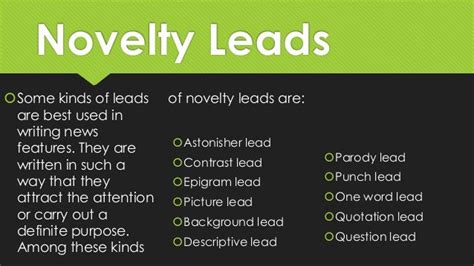 By incorporating these elements and avoiding common pitfalls, journalists can craft leads that not only inform but also captivate, ensuring that their stories resonate with readers and leave a lasting impression. So , go forth and write some killer leads!