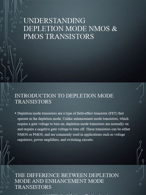• Analog Circuits: While primarily used in digital circuits, NMOS and PMOS transistors also find applications in analog circuits, such as amplifiers and filters. They can be configured to amplify weak signals, filter out unwanted noise, and perform other signal processing functions. CMOS-based analog circuits offer low distortion, high linearity, and low power consumption, making them suitable for a wide range of applications.