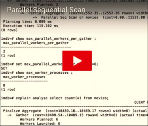 Most modern database systems, like PostgreSQL, Oracle, and SQL Server, support parallel sequential scans . However, the exact configuration and implementation details may vary. Let’s take a look at some general guidelines: