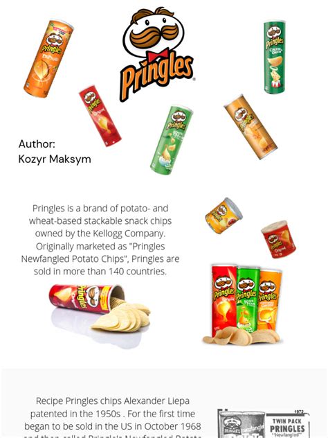 Let’s dive a bit deeper into the fascinating history behind Pringles , because honestly, it’s a story of pure snack innovation, guys. Before Pringles came along, potato chips were kind of a messy affair. They were typically bagged, meaning they got broken easily, and were often greasy. Enter Fredric Baur , a chemist and food scientist at Procter & Gamble. He was reportedly frustrated with the broken, stale, and greasy chips he kept finding in bags. Baur’s vision was to create a chip that was consistently shaped, uniformly seasoned, and perfectly stacked to prevent breakage. He patented this design in 1958, and it was a game-changer. The key innovation was the unique hyperbolic paraboloid shape – basically, a saddle shape that allowed the chips to be stacked efficiently and prevented them from rattling around too much in the container. This shape isn’t just for looks; it’s crucial for structural integrity. Think about it, guys, each chip supports the one above it, creating a robust column of deliciousness. The other massive leap forward was the iconic cylindrical can . This wasn’t just about making them look cool; it was a practical solution to the chip breakage problem. The tall, narrow can, made of a composite material including metal, cardboard, and plastic, protected the delicate chips far better than a flimsy bag ever could. It also kept them fresher for longer, thanks to the foil inner lining and the resealable plastic lid. This packaging innovation meant that Pringles could be shipped longer distances and arrive at their destination in pristine condition. The marketing was also revolutionary. Pringles were initially marketed not as ‘potato chips’ but as ‘potato crisps’ to differentiate them from the competition and highlight their unique qualities. The slogan ‘Once you pop, the fun don’t stop’ became incredibly famous, perfectly capturing the addictive nature of the snack. The initial launch in 1968 was in Indiana, and by 1975, they were available nationwide in the US. Procter & Gamble sold the brand to Kellogg’s in 2012, but the core principles of Baur’s invention – the shape, the stack, and the can – remain the heart and soul of Pringles today. It’s a testament to brilliant engineering and a deep understanding of consumer desires for a snack that’s both convenient and consistently satisfying.