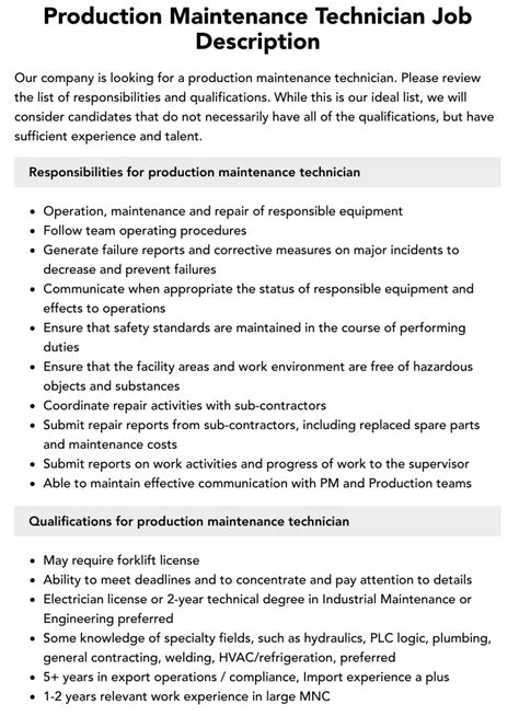 Production Maintenance Technician: Your Guide