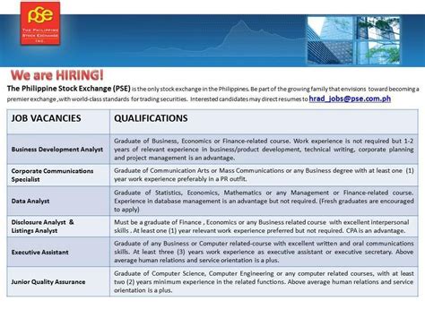 Diversify your portfolio . Don’t put all your eggs in one basket. Spread your investments across different companies, industries, and asset classes. This will help reduce your risk and increase your chances of success. Invest for the long term . The stock market can be volatile in the short term, but over the long term, it has historically provided good returns. Don’t try to time the market or make quick profits. Focus on building a diversified portfolio and holding it for the long haul. Stay disciplined . Stick to your investment plan and don’t let emotions drive your decisions. Avoid making impulsive trades based on fear or greed. Seek professional advice . If you’re new to investing, consider consulting with a financial advisor. They can help you develop a personalized investment plan and provide guidance along the way. Continuously learn . The world of investing is constantly changing, so it’s important to stay up-to-date on the latest trends and developments. Read books, attend seminars, and follow reputable financial news sources. By following these tips, you can increase your chances of success in the Philippine Stock Exchange. Remember, investing is a marathon, not a sprint. Be patient, disciplined, and always keep learning. With the right approach, you can potentially achieve your financial goals and build a brighter future.