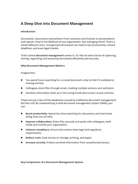 • Improved Collaboration: Centralized document storage and collaboration tools facilitate seamless teamwork, regardless of location. Team members can easily access, share, and co-author documents, leading to better communication and faster project completion. Collaboration is key to innovation and success.