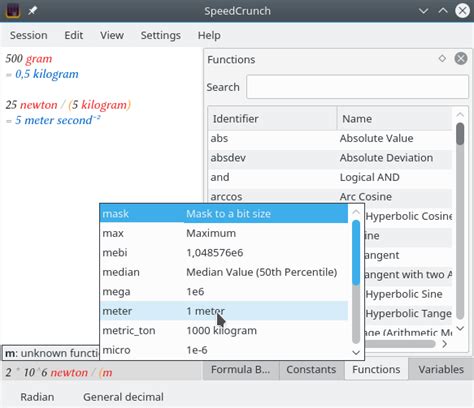 SpeedCrunch comes with an extensive library of built-in functions, covering everything from basic arithmetic to advanced calculus. You’ll find trigonometric functions, hyperbolic functions, logarithmic functions, statistical functions, and much more. If that’s not enough, you can also define your own custom functions to tailor the calculator to your specific needs.