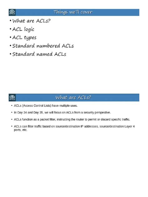 Now that we know what Standard ACLs are and how they work, let’s talk about why they’re so important. Even though they’re relatively simple compared to more advanced ACL types, standard ACLs play a critical role in network security and management. First off, security enhancement is a biggie. Standard ACLs allow you to block traffic from known malicious sources or untrusted networks. This can help prevent unauthorized access to sensitive resources and protect your network from attacks. For instance, if you notice a particular IP address constantly trying to access your servers, you can quickly block it using a standard ACL. Beyond security, standard ACLs also help with network traffic control . By selectively permitting or denying traffic, you can prioritize certain types of traffic or limit bandwidth usage. This can improve network performance and ensure that critical applications have the resources they need. Imagine you want to ensure that video conferencing traffic gets priority over file downloads. While standard ACLs alone can’t do this, they can be used in conjunction with other techniques to achieve this goal. Standard ACLs can assist with basic source-based filtering . Because they operate based on source IP addresses, standard ACLs are useful for blocking entire networks or specific hosts from accessing internal resources. For example, you can block all traffic originating from a specific country or region. They also make network troubleshooting easier. By examining ACL configurations and logs, you can quickly identify and resolve network connectivity issues. If users are reporting that they can’t access a particular resource, you can check the ACLs to see if their traffic is being blocked. Standard ACLs provide a basic foundation for more advanced security measures. While they may not be sufficient for complex security requirements, they can be used in conjunction with other technologies, such as firewalls and intrusion detection systems, to create a more robust security posture. In summary, standard ACLs are important because they enhance security, control network traffic, facilitate troubleshooting, and provide a foundation for more advanced security measures. They are a fundamental tool for any network administrator looking to protect and manage their network effectively.