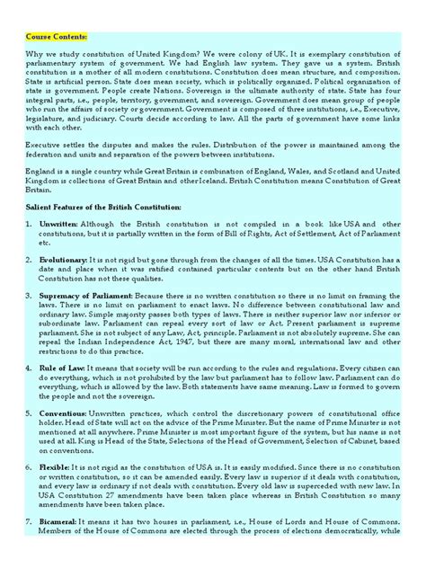 Now, here’s where things get a little bit more squishy but equally important: constitutional conventions . These are unwritten rules and practices that are considered binding on political actors, even though they are not enforceable by the courts. Think of them as the established customs and understandings that guide how the government and other institutions operate. For example, it’s a long-standing convention that the monarch will give Royal Assent to any bill passed by both Houses of Parliament – they won’t refuse it. Another key convention is that the Prime Minister must be a Member of Parliament (MP), usually the leader of the party with a majority in the House of Commons. If the government loses a vote of no confidence in the Commons, it’s expected to resign or call a general election. These conventions are vital because they fill the gaps left by the absence of a codified constitution. They ensure the smooth functioning of government and maintain democratic accountability. The reason they are followed is that breaking them would have serious political consequences – they could lead to a constitutional crisis, loss of public confidence, or even the downfall of the government. So, while you won’t find these rules written down in any statute book, they are deeply ingrained in the political culture of the UK. They are learned through practice and passed down through generations of politicians and civil servants. Understanding these conventions is absolutely essential for anyone wanting to grasp the realities of UK constitutional law and practice. They are the unwritten agreements that make the written rules work, and they are just as powerful, if not more so, in shaping how the country is governed. It’s like the unspoken etiquette of politics, really! It’s a testament to the UK’s unique historical development that these unwritten rules hold such significant weight.