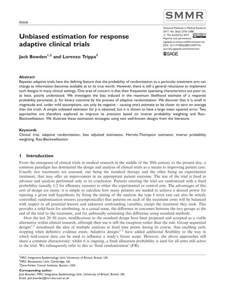 Hey there, data wizards and clinical trial enthusiasts! Ever heard of response-adaptive clinical trials ? They’re pretty darn cool because they let us tweak things during the trial based on how patients are responding. This means we can potentially get to the right treatment faster and reduce the number of folks getting a less effective therapy. Pretty neat, right? But here’s the catch, guys: doing this adaptation means the data we collect isn’t quite as straightforward as in a traditional trial. This is where the magic of unbiased estimation comes into play. We need to make sure that when we analyze the results, our estimates of how well a treatment works are true and not skewed by the very adaptations we’re making. It’s like trying to get a fair reading on a scale that’s constantly adjusting – tricky, but super important for making sound decisions. In this article, we’re going to dive deep into why unbiased estimation is a big deal in these dynamic trials and explore some of the clever ways researchers are tackling this challenge. So, buckle up, grab your favorite beverage, and let’s unravel the fascinating world of unbiased estimation in response-adaptive clinical trials. We’ll be chatting about the nitty-gritty, the potential pitfalls, and the awesome solutions that keep these trials both efficient and, most importantly, reliable . Get ready to level up your understanding of clinical trial design and analysis!