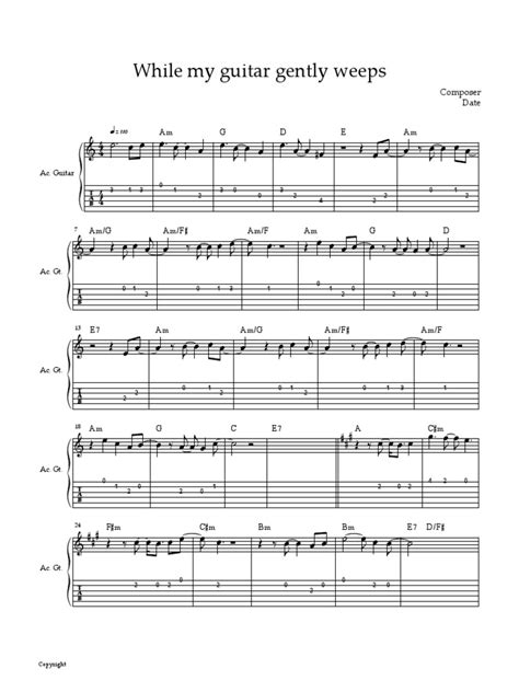 Beyond the chords and solos, the texture of While My Guitar Gently Weeps is built on its unique fingerpicking and strumming patterns . The intro, for instance, is iconic. It’s a beautiful, arpeggiated pattern that sets the melancholic mood right from the get-go. This isn’t a typical strummed chord progression; it requires a delicate touch and precision with your picking hand. We’ll break down this intro pattern, showing you which strings to pluck and in what order. It’s a great exercise for developing your finger independence and dexterity. As the song progresses into the verses, you’ll notice a more subdued strumming pattern. It’s not aggressive; it’s more of a gentle, rhythmic pulse that supports the vocals and the lyrical content. We’ll explore different ways to achieve this softer strum, perhaps using the flesh of your fingers or a felt pick if you have one. The key is dynamics – playing loud when the song calls for it and soft when it needs introspection. This ebb and flow is essential to the emotional arc of the song. For the chorus, the strumming might become slightly more pronounced, adding a subtle lift without overpowering the melody. It’s about finding that sweet spot where your rhythm enhances the song’s feeling rather than just filling space. For advanced players, consider incorporating Travis picking or other hybrid picking techniques to add more complexity and richness to the accompaniment. This can really elevate your performance and make it sound closer to the studio recording. Remember, the goal is to serve the song. Your strumming and picking should always support the melody and lyrics, drawing the listener further into the song’s narrative. Practice these patterns slowly, focusing on clean execution and consistent rhythm. Gradually increase your speed, ensuring that you maintain accuracy and fluidity. It’s these subtle rhythmic details that often make a song truly memorable and engaging. So, grab your guitarra , and let’s get those fingers moving!